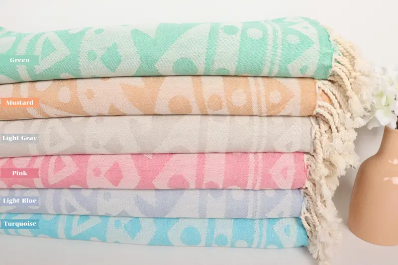 Wedding Favors Round Pattern Towel Organic Cotton Beige, 40x71 Inches