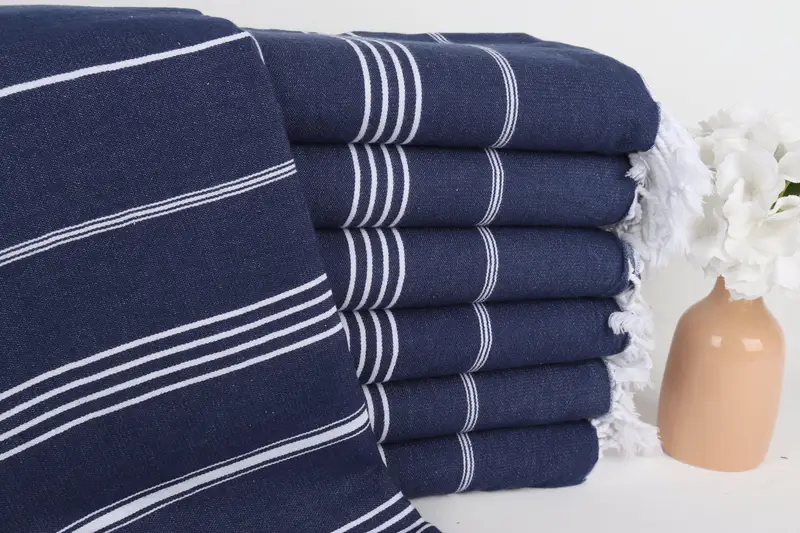 Beach Towel Navy Cotton 40x71 Inches, Handmade Gift