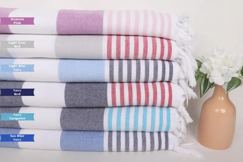 Beach Towel Monogrammed Turkish Cotton Beige Stripes, 36x67 Inches