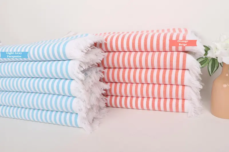 Beach Towel Monogrammed Turkish Organic Cotton, Beige Stripes, 40x71 Inches
