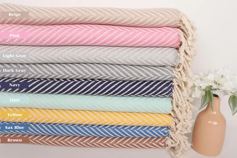 Turkish Bath Towel Monogrammed Organic Cotton Beige Stripes, 40x69 Inches