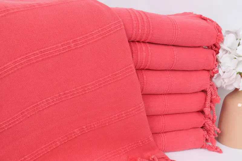 Striped Stonewashed Towel Red Cotton Organic, 36x67 Inches