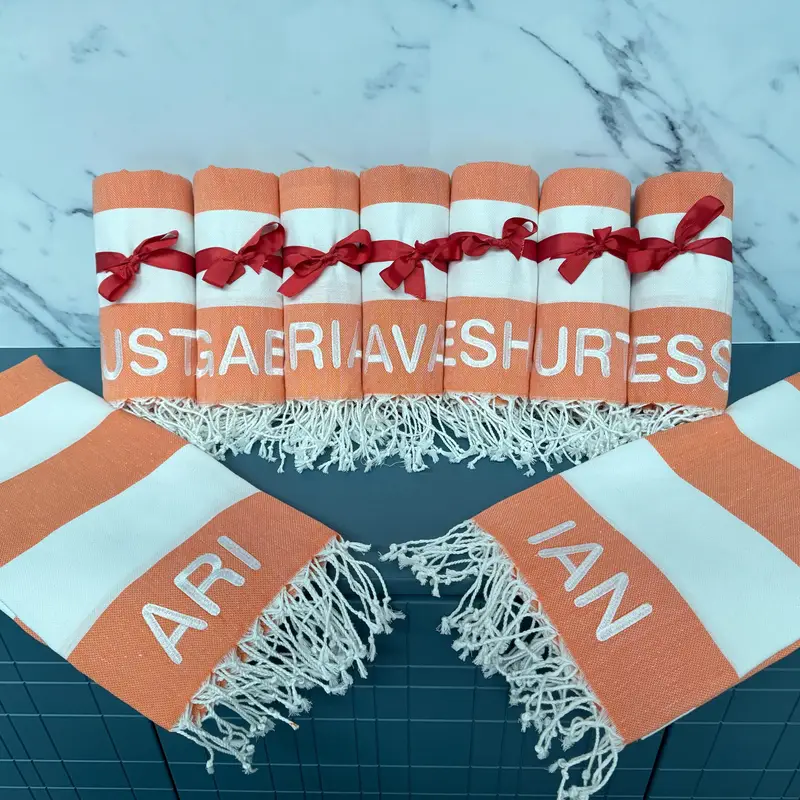 Personalized Turkish Towel Embroidered Cotton Beach Towel Beige, 100x180 cm