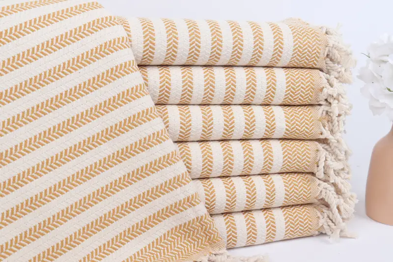 Personalized Beach Towel Cotton Mustard Chevron, Organic, 40x71 Inches