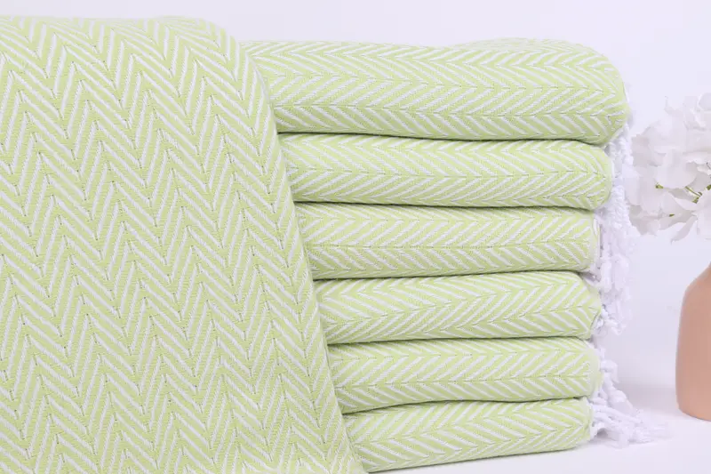 Zig Zag Towel Monogrammed Organic Cotton Green and Beige, 40x67 Inches