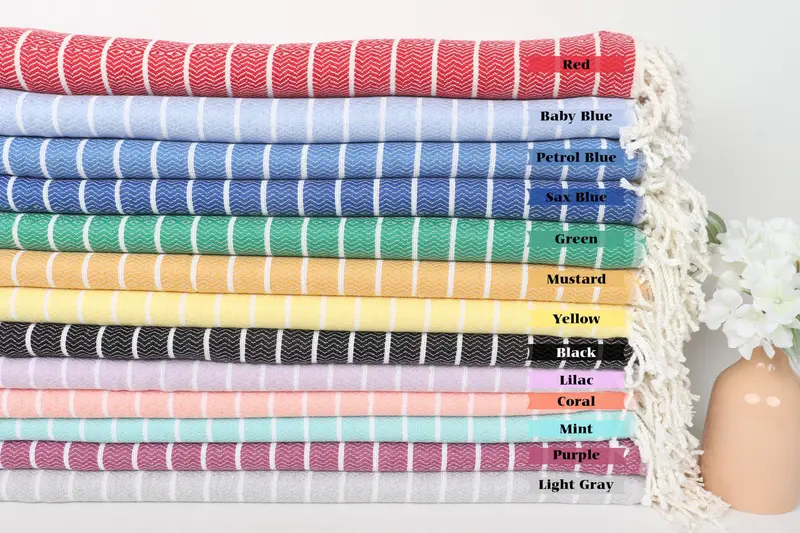 Gift For Home Organic Cotton Beach Towel Striped Beige, 40x71 Inches