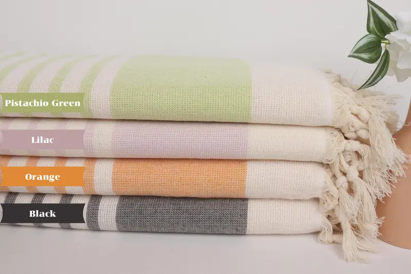 Fouta Towel Organic Cotton Striped Terry, Beige, 36x63 Inches
