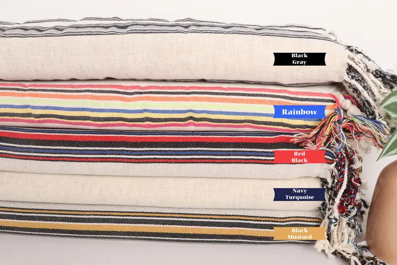 Personalized Organic Cotton Beach Towel Striped Beige, 38x71 Inches