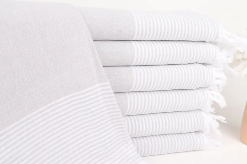 Turkish Towel Beach Gray Striped Monogram 40x71 Inches
