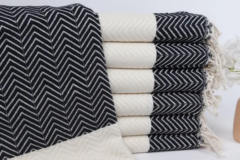 Handmade Zig Zag Beach Towel Navy Organic Cotton, 40x71 Inches