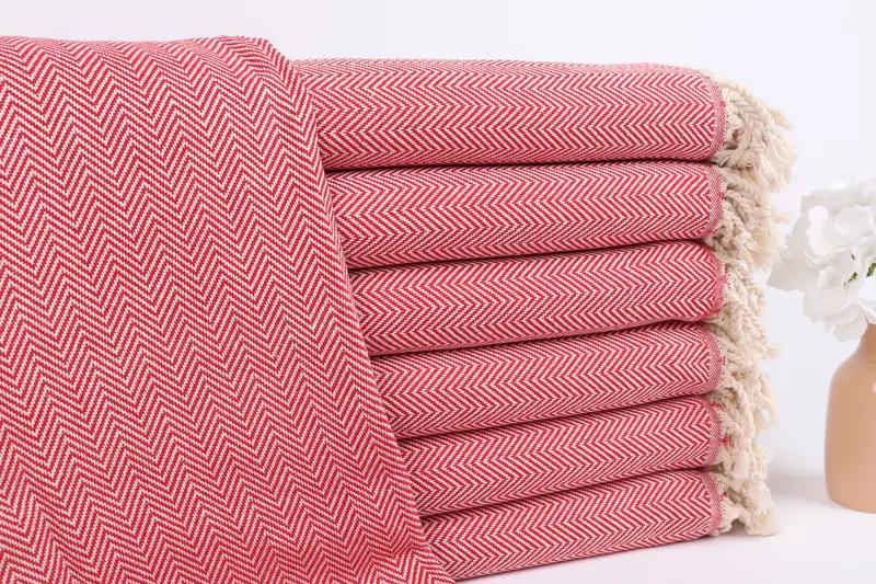 Personalized Beach Towel Turkish Cotton Red Herringbone, 40x71 Inches
