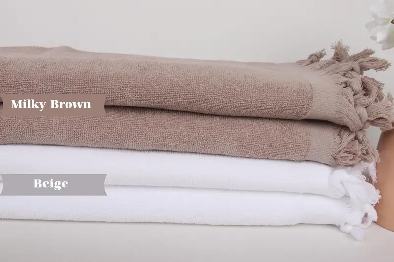 Monogrammed Beach Towel Organic Cotton Solid Beige, 36x67 Inches