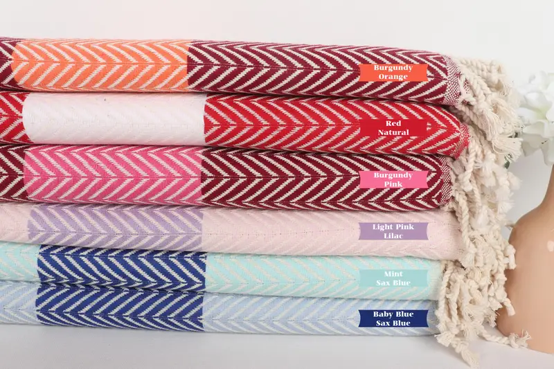 Beach Towel Chevron Personalized Organic Cotton Beige, 40x71 Inches