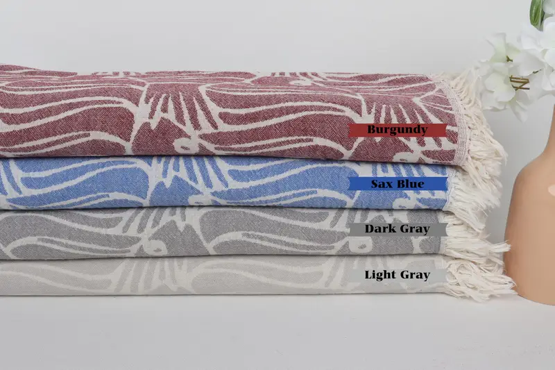 Beach Towel Handmade Organic Cotton Beige Fish Design, 36x71 Inches
