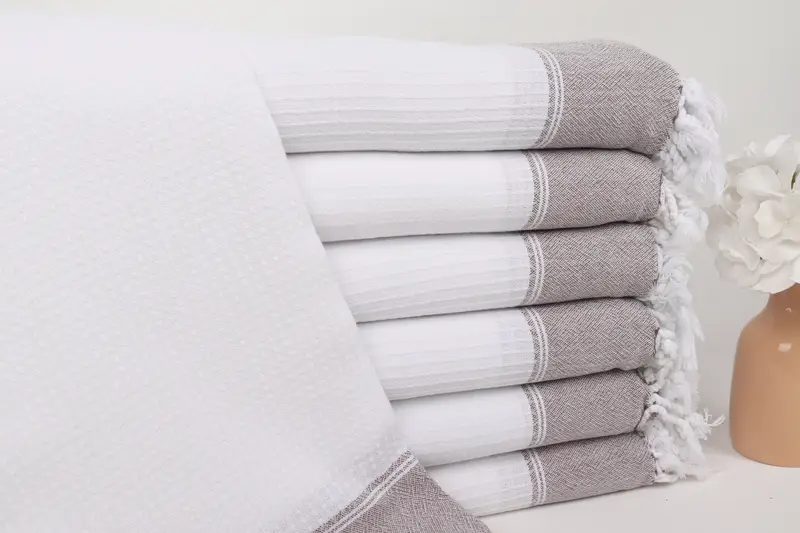 Custom Beach Towel Monogrammed Turkish Cotton Brown-White, 36x71 Inches
