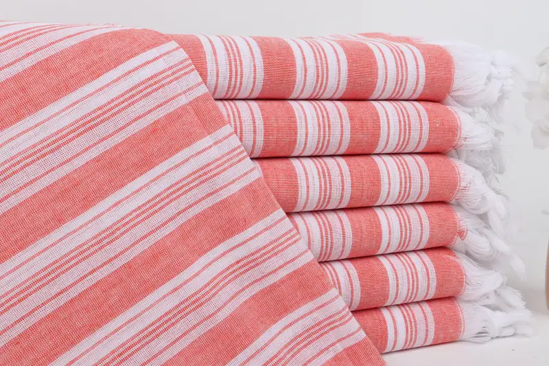 Beach Towel Monogrammed Turkish Cotton Orange Beige Stripes, 40x71 Inches