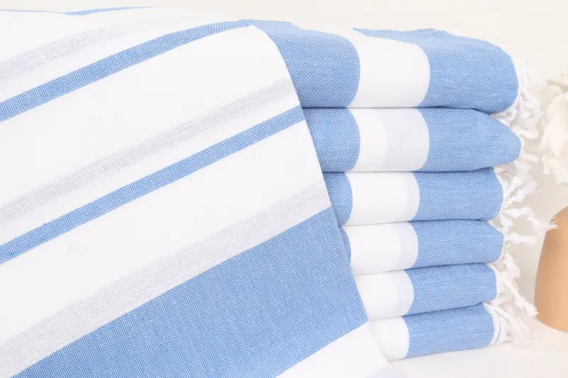 Bridesmaid Gift Embroidered Beach Towel Sax Blue Striped, 40x71 Inches