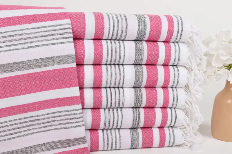Turkish Towel Beach Personalized Cotton Dark Gray-Pink, 40x71 Inches