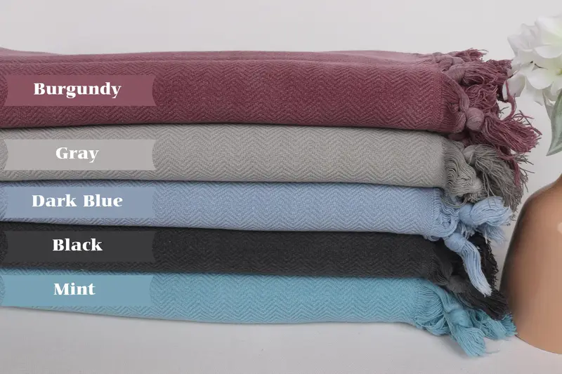 Turkish Cotton Towel Monogrammed Herringbone Beach, Beige, 40x63 Inches