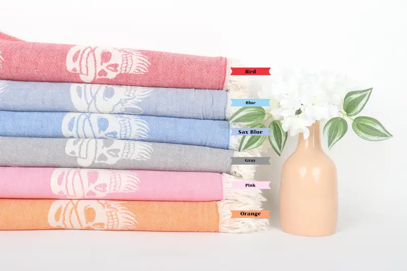 Personalized Turkish Beach Towel Skull Patterned, Organic Cotton, 36x71 Inches