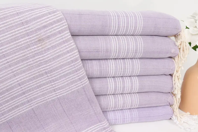 Striped Towel Cotton Beach Towel Lilac Beige 40x71 Inches