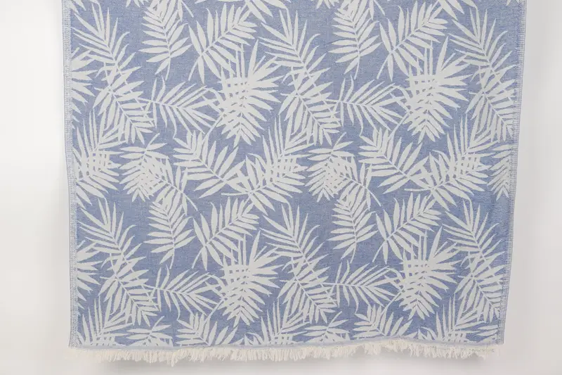 Turkish Beach Towel Floral Patterned Sax Blue, 40x63 Inches