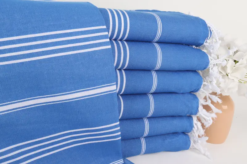 Sax Blue Cotton Towel Handmade Beach Towel, 40x71 Inches