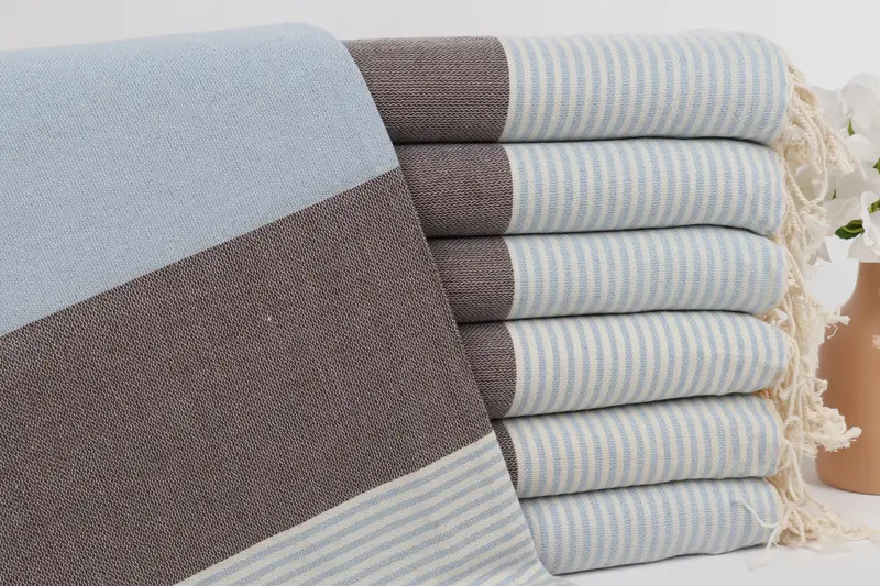 Personalized Turkish Beach Towel Monogrammed, Blue Stripes, 67x40 Inches