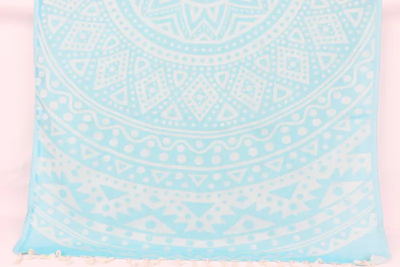 Turquoise Cotton Beach Towel Round Pattern Bachelorette Gift, 36x71 Inches