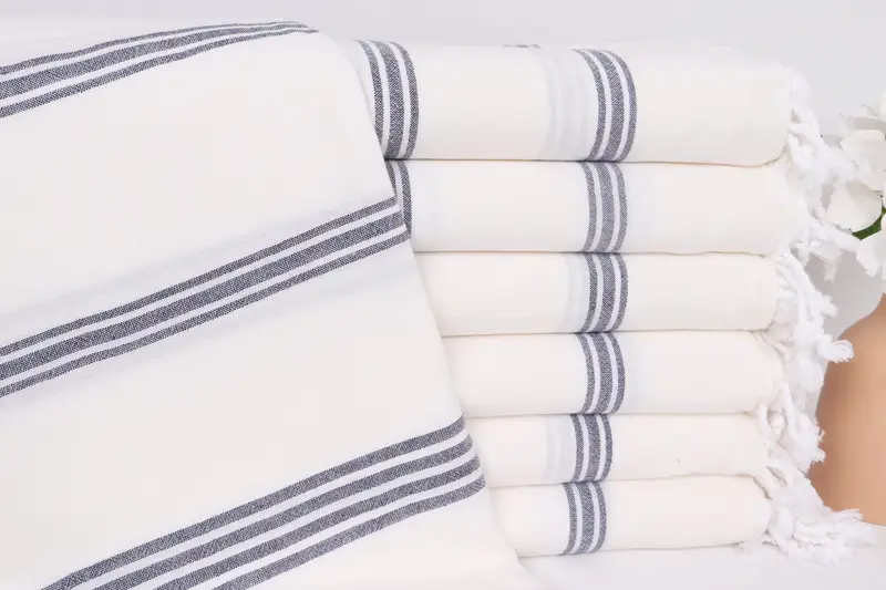 Striped Towel Navy Organic Cotton Beach Towel, 40x71 Inches