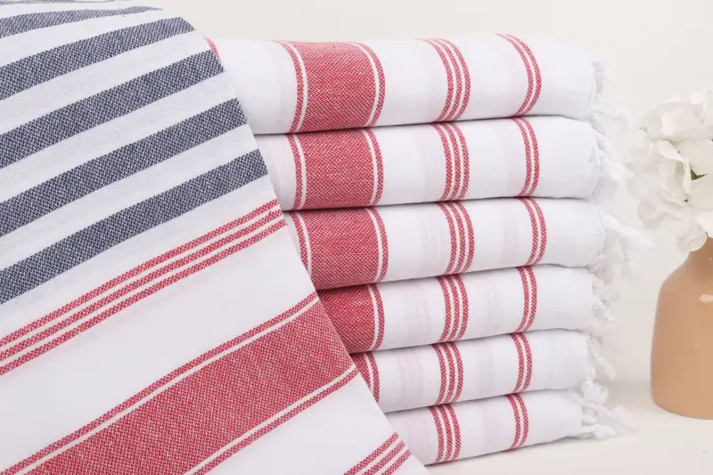 Turkish Beach Towel Navy Blue-Red Striped, 40x71 Inches