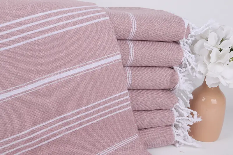 Gift for Coworker Dusty Rose Striped Towel, Turkish Cotton, 40x71 Inches