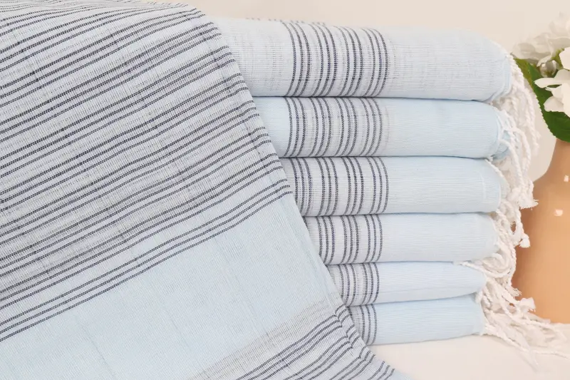 Beach Towel Personalized Turkish Cotton Baby Blue-Navy, 40x71 Inches