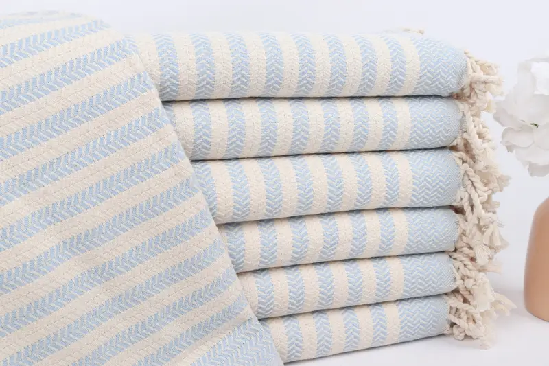 Handmade Gift Monogrammed Beach Towel Baby Blue Cotton 40x71 Inches