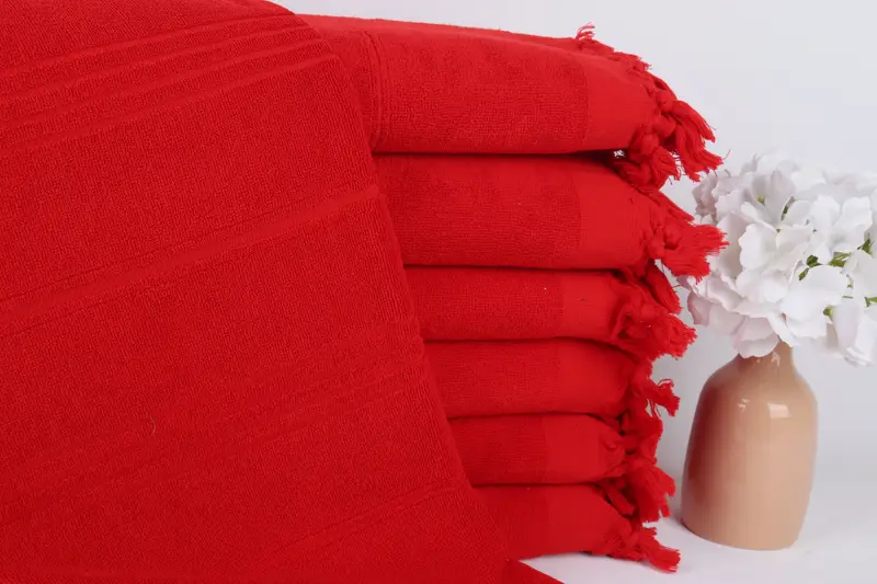 Cotton Towel Red Striped Beach Towel Boyfriend Gift, 36x71 Inches