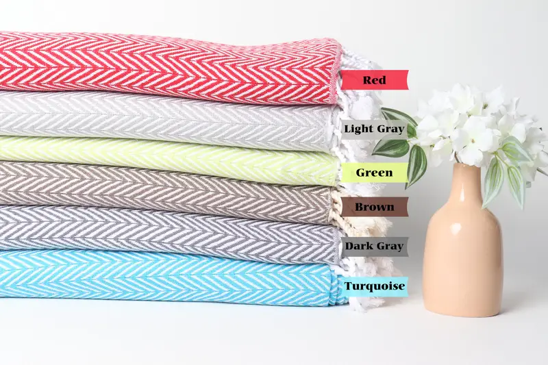 Personalized Turkish Beach Towel Organic Cotton Beige Zig Zag, 67x40 Inches