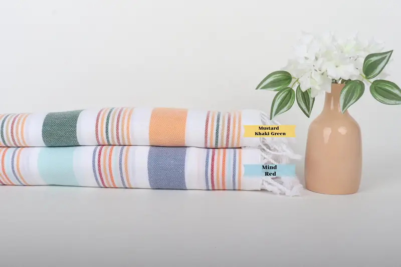 Personalized Cotton Beach Towel Turkish, Beige Stripes, 38x75 Inches