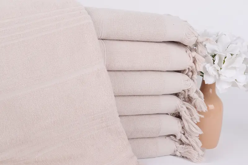 Beach Towel Monogrammed Turkish Cotton Beige Stripes, 36x71 Inches