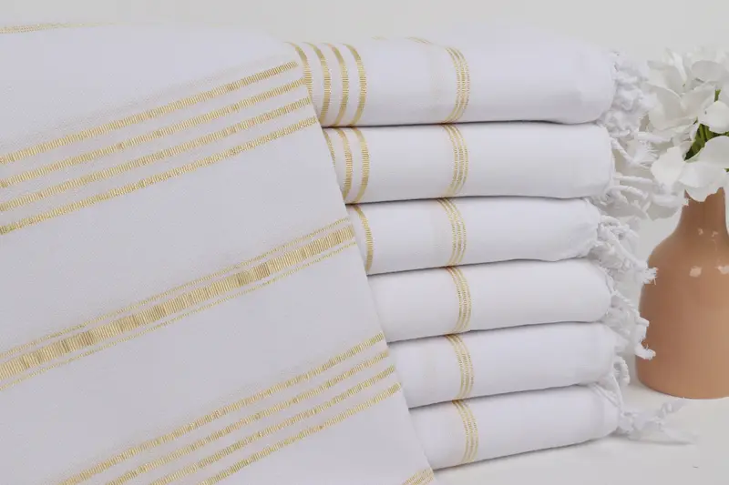 Beach Towel Turkish Cotton Bright Yellow Beige Stripes, 40x71 Inches