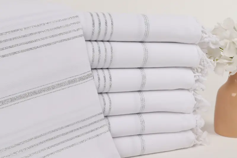 Striped Beach Towel Organic Cotton Gray Silvery, 40x71 Inches