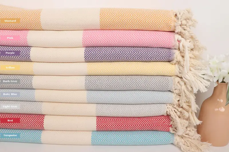 Beach Towel Personalized Organic Cotton Herringbone Beige, 40x71 Inches