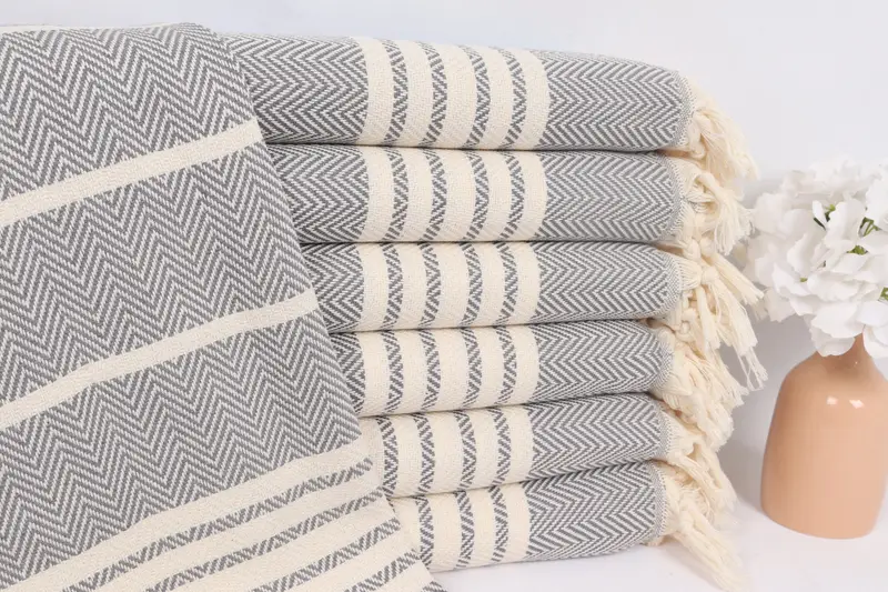 Kitchen Towel Personalized Dark Gray Cotton Striped, 20x40 Inches