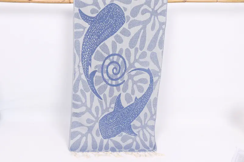 Personalized Whale Design Dish Towel Sax Blue, 18x40 Inches