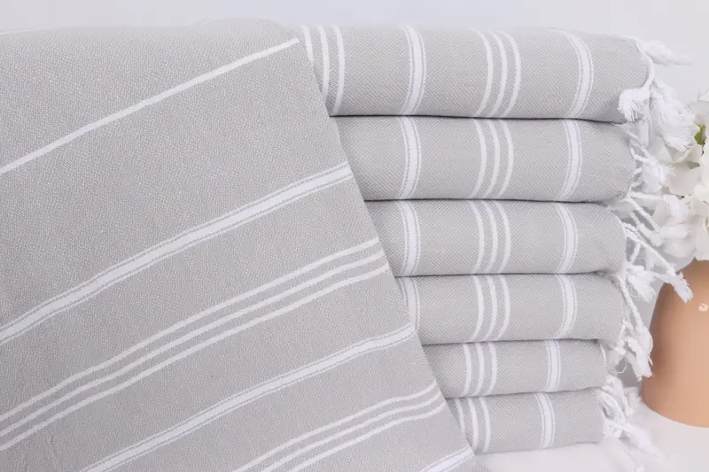 Kitchen Towel Striped Hand Towel Light Gray Cotton 24x40 Inches