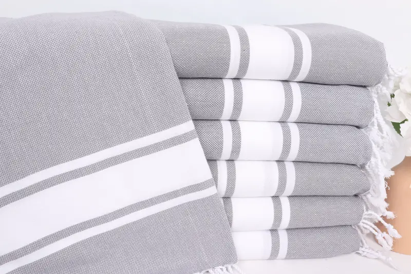 Monogram Hand Towel Dark Gray Cotton Striped, 24x36 Inches