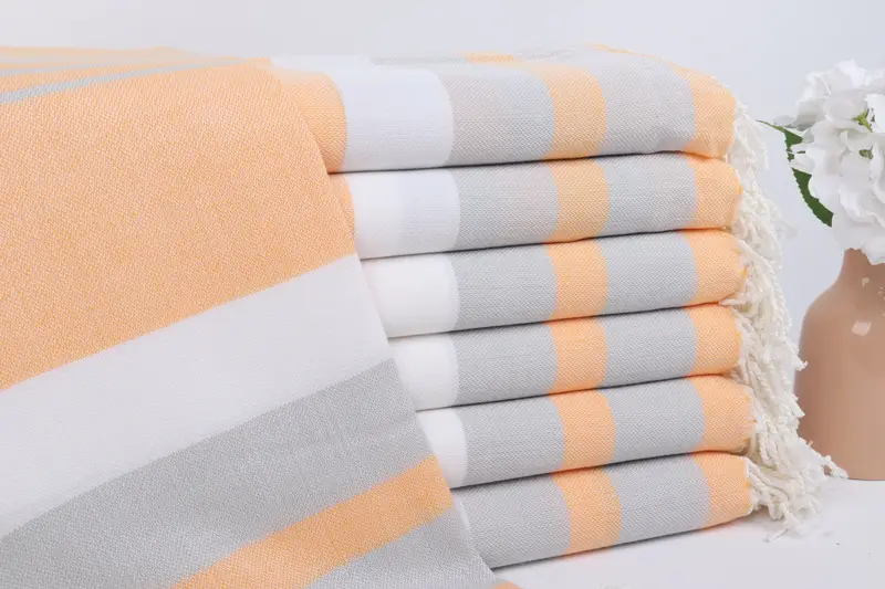 Characterized by the use of 100% Organic Turkish Cotton, the Turkish Beach Towel is renowned for its exceptional absorbency and quick-drying properties, ensuring optimal functionality for various uses. The towels measure 40x71 inches or 100x180 cm, with weight amounting to 300 grams. Hand-weaving tolerances allow for a 5% variance in size, accommodating diverse needs.
