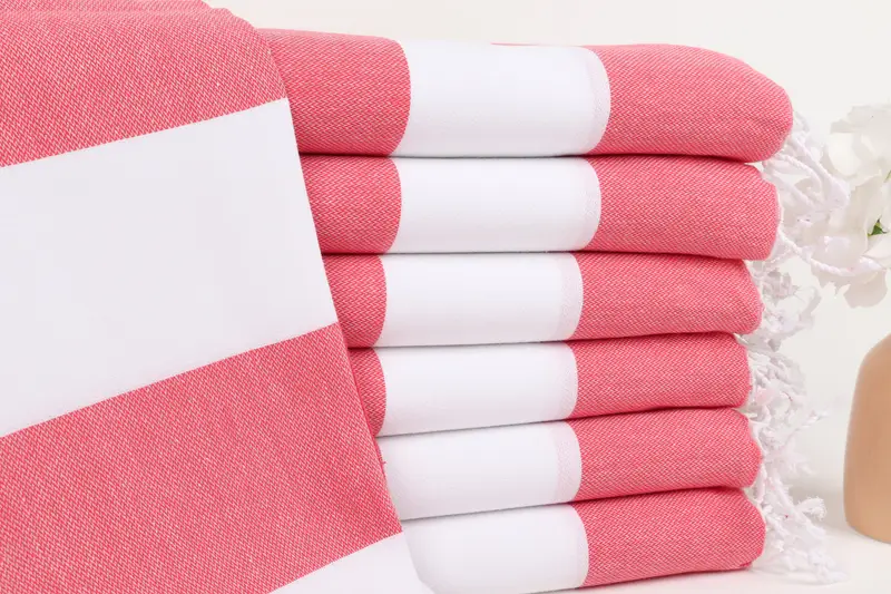 The Turkish beach towel is characterized by its material composition of 100% organic Turkish cotton, ensuring excellent absorbency and quick drying. This results in towels that are lightweight at 290 grams and have dimensions of 40x71 inches (100x180 cm) with a permissible size deviation of 5%. These towels are suitable for various uses, including pool, bath, fitness, picnic, and travel applications.