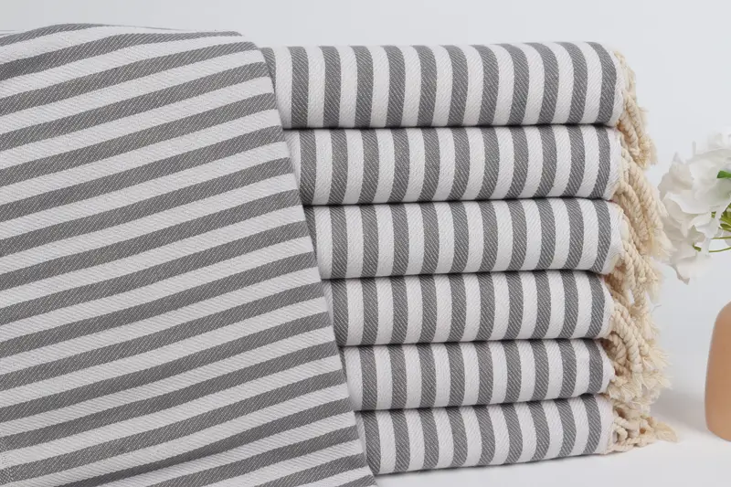 Home Decor Gray Cotton Striped Towel Bath, 40x71 Inches