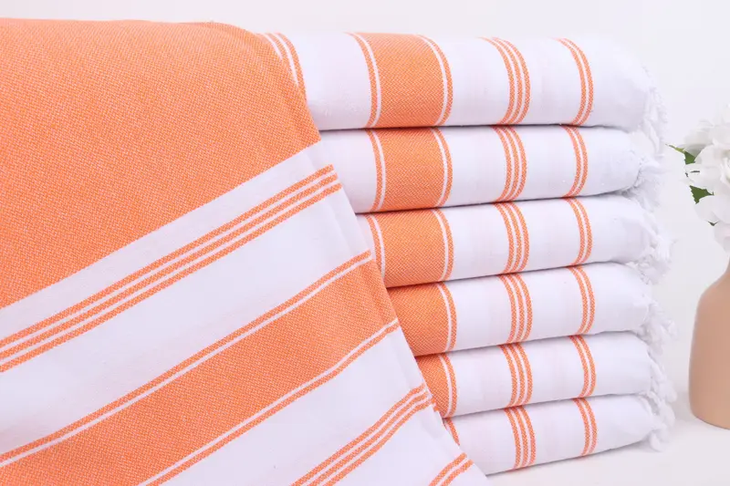 Bridesmaid Gift Cotton Towel Striped Orange Beige, 40x71 Inches