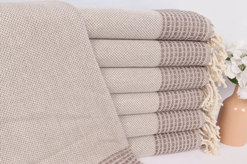 Striped Tea Towel Personalized Hand Towel Brown Cotton, 20x40 Inches